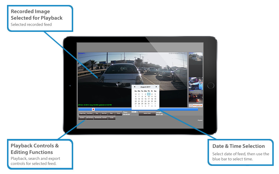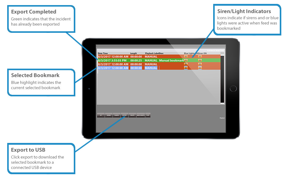 Vidi-Sync Patrol HD™ is our tablet touchscreen software interface that allows police officers to have local access to and interact with their in-car Mobile CCTV system.